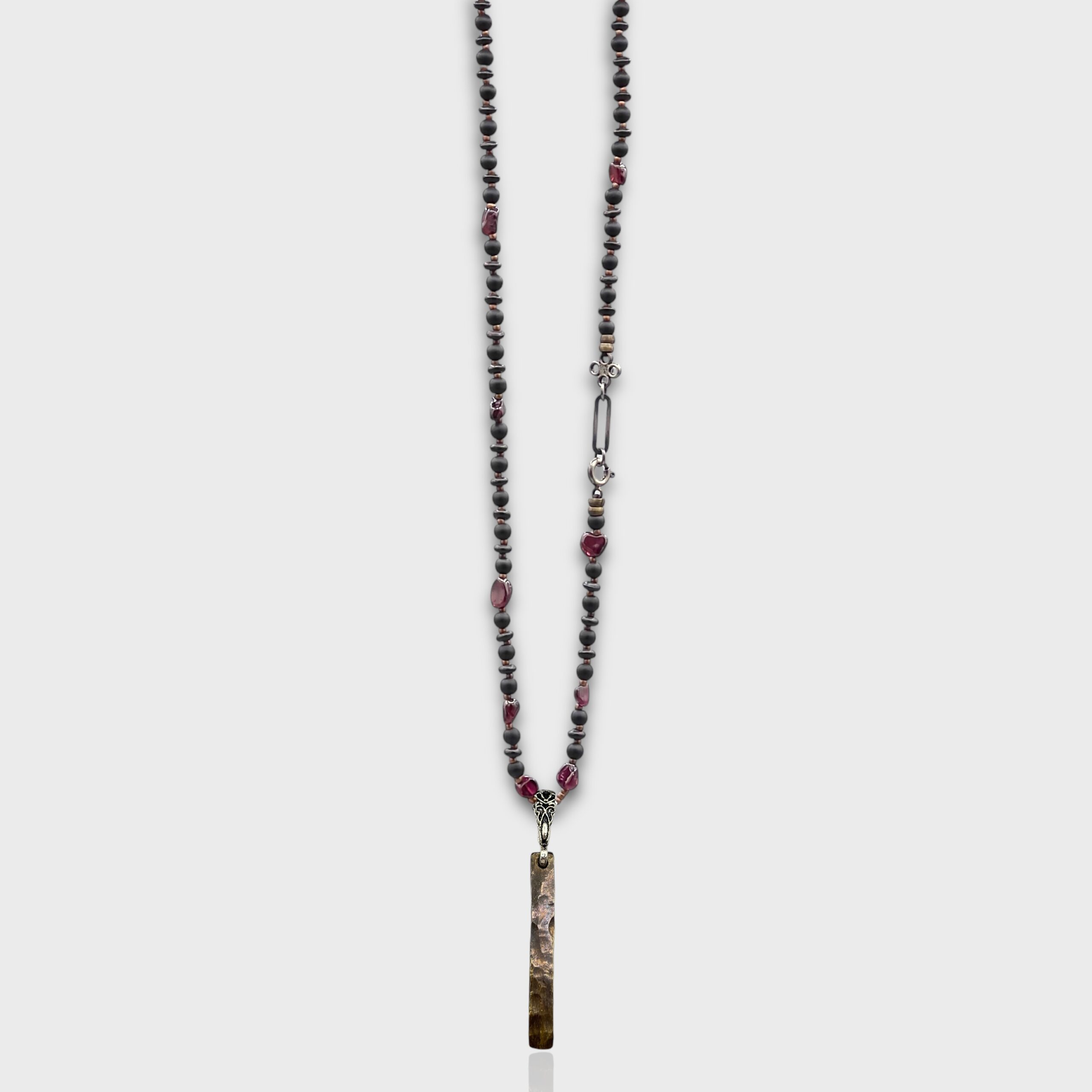 Lal taşı, onyx, bronz ve gümüş kullanılarak tasarlandı.