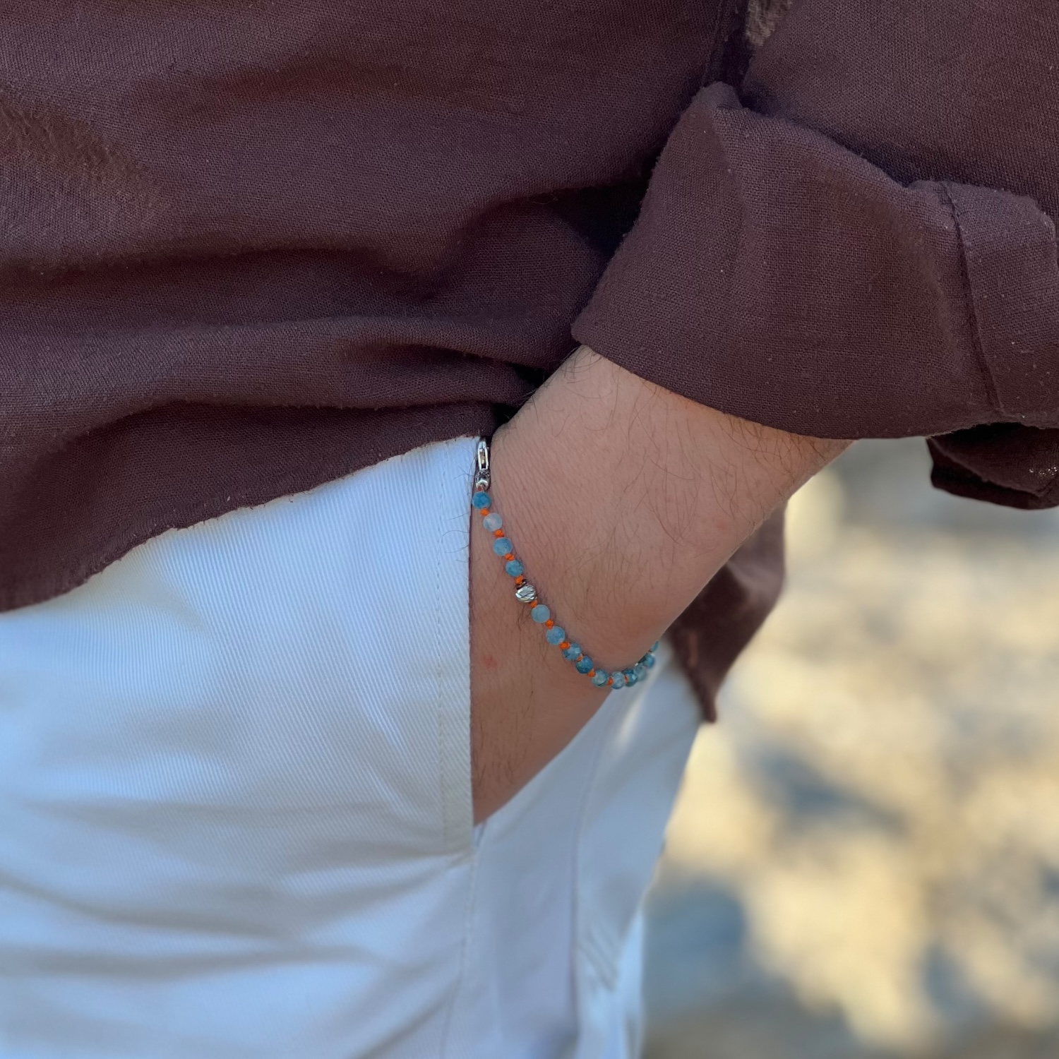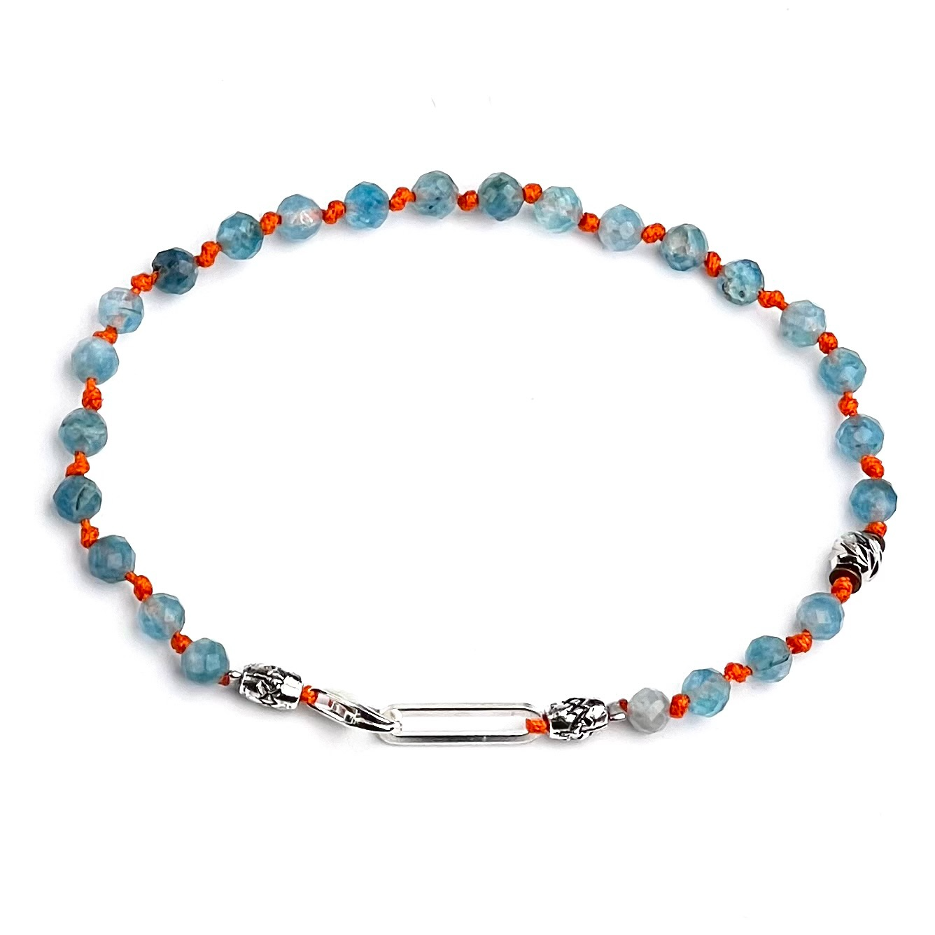 Aquamarin, turuncu ip, 925 gümüş kullanılarak tasarlandı.