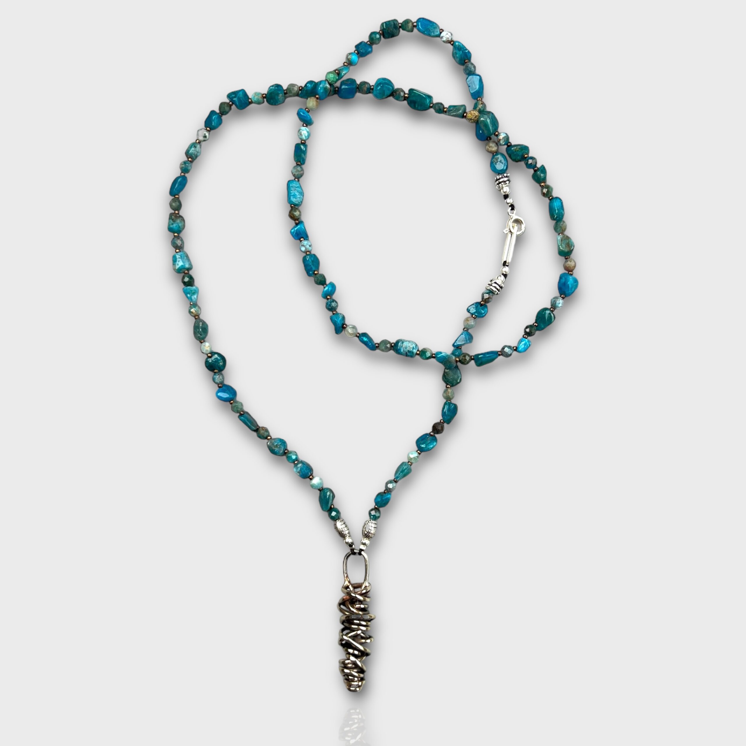 Aquamarin ve gümüş kullanılarak tasarlanmıştır.