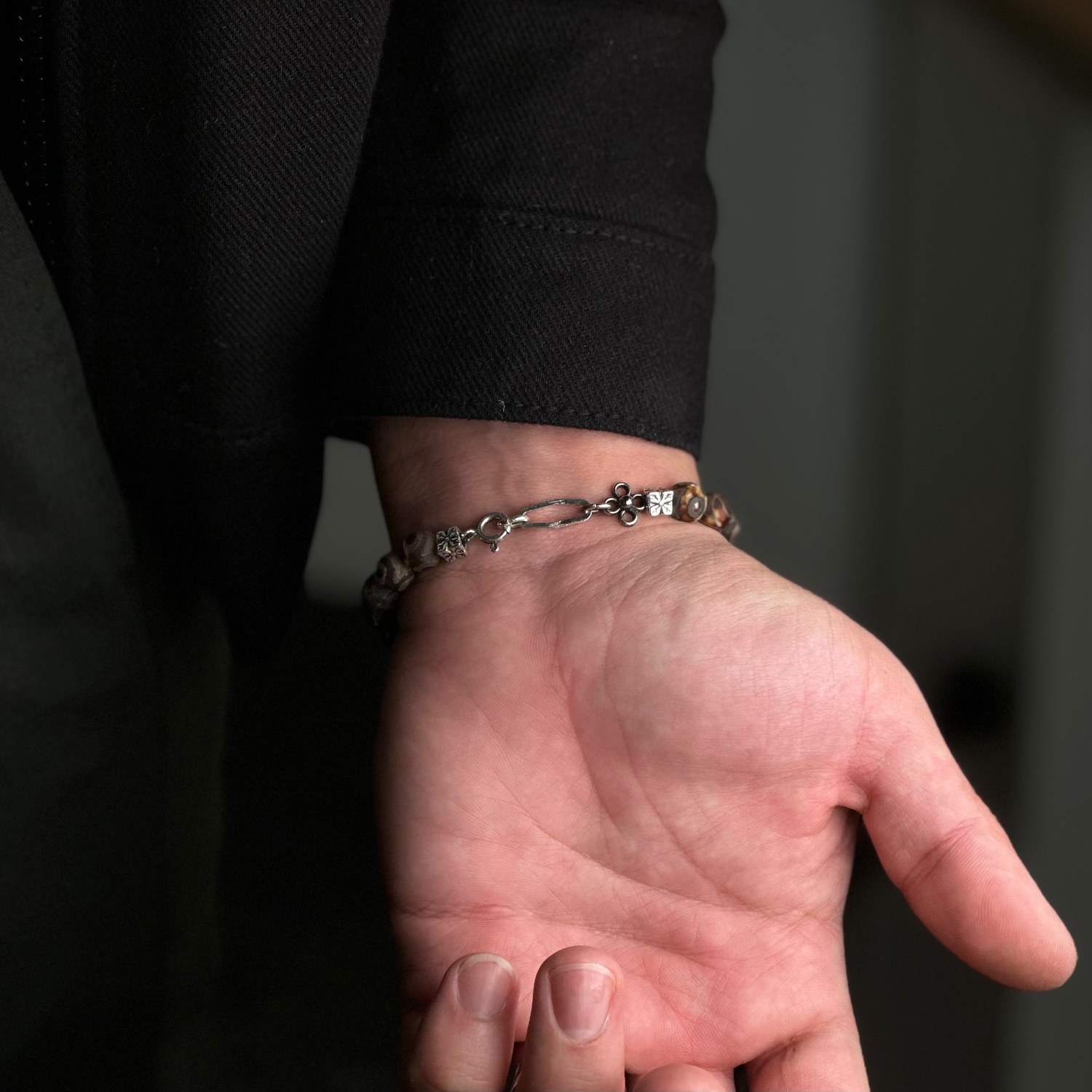 Gümüş ve tibet akik ile tasarlandı.