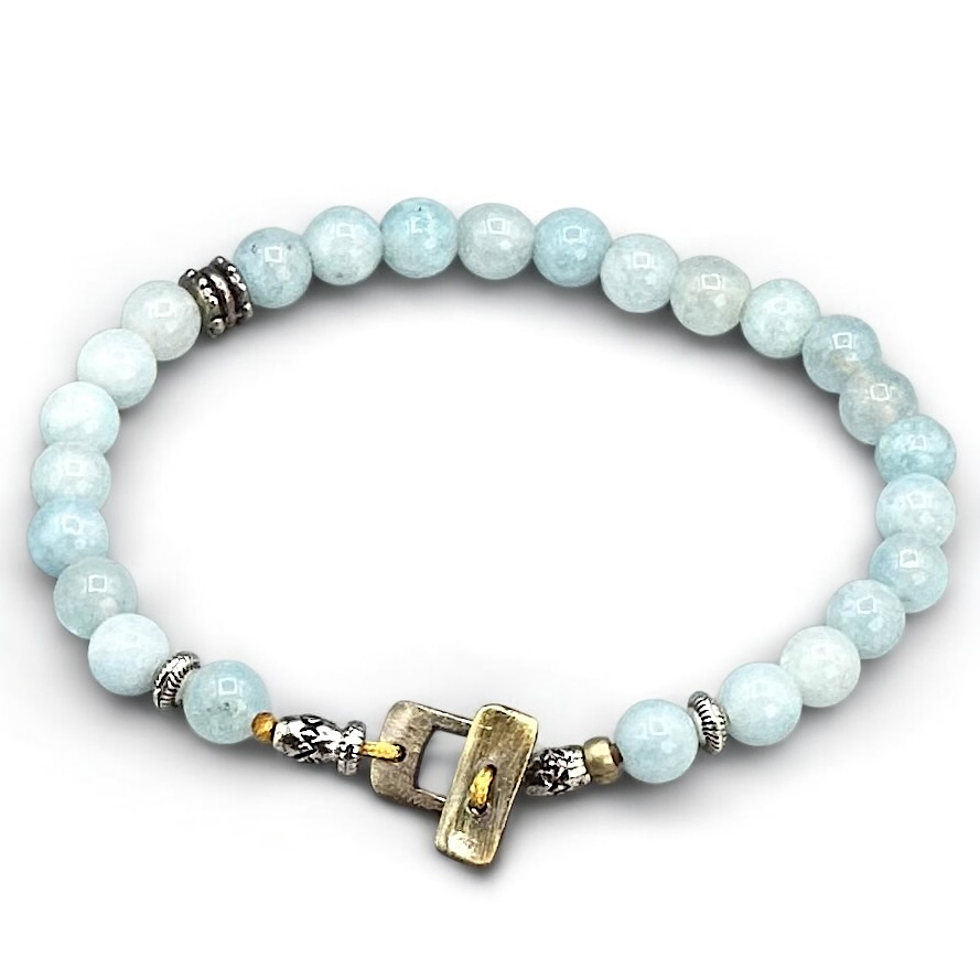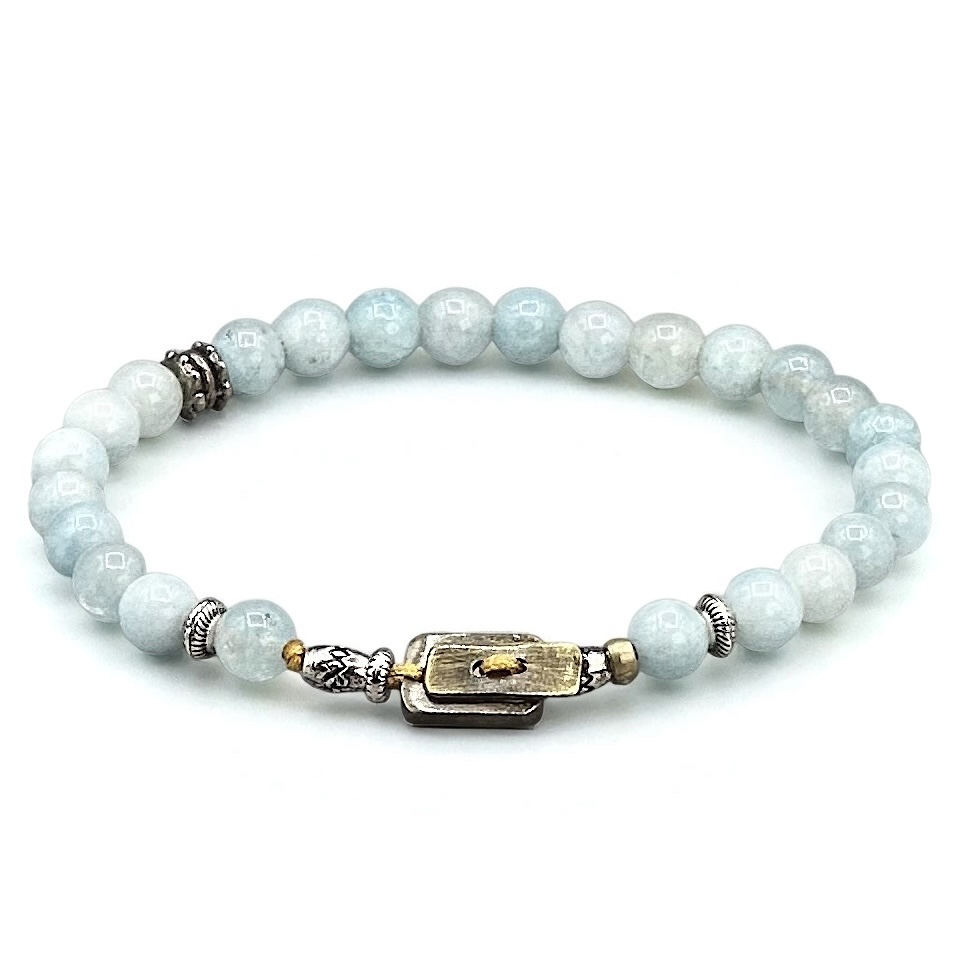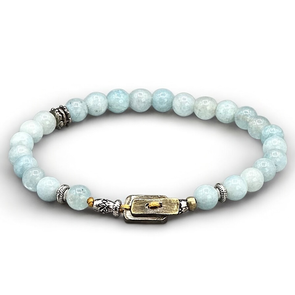Aquamarin, gümüş, bronz kullanılarak tasarlandı.