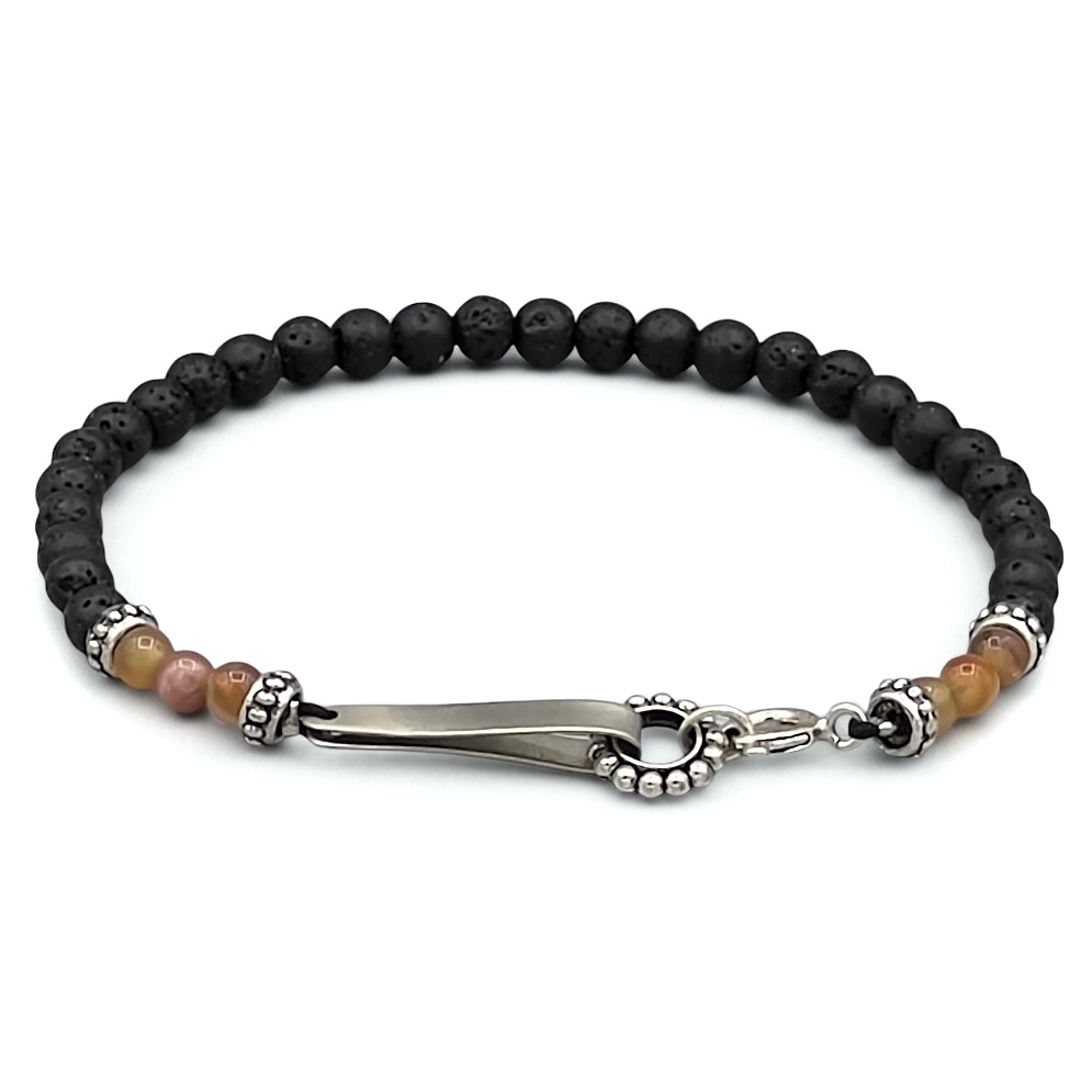 Lav taşı, turuncu aventurin ve gümüş kullanılarak tasarlandı.