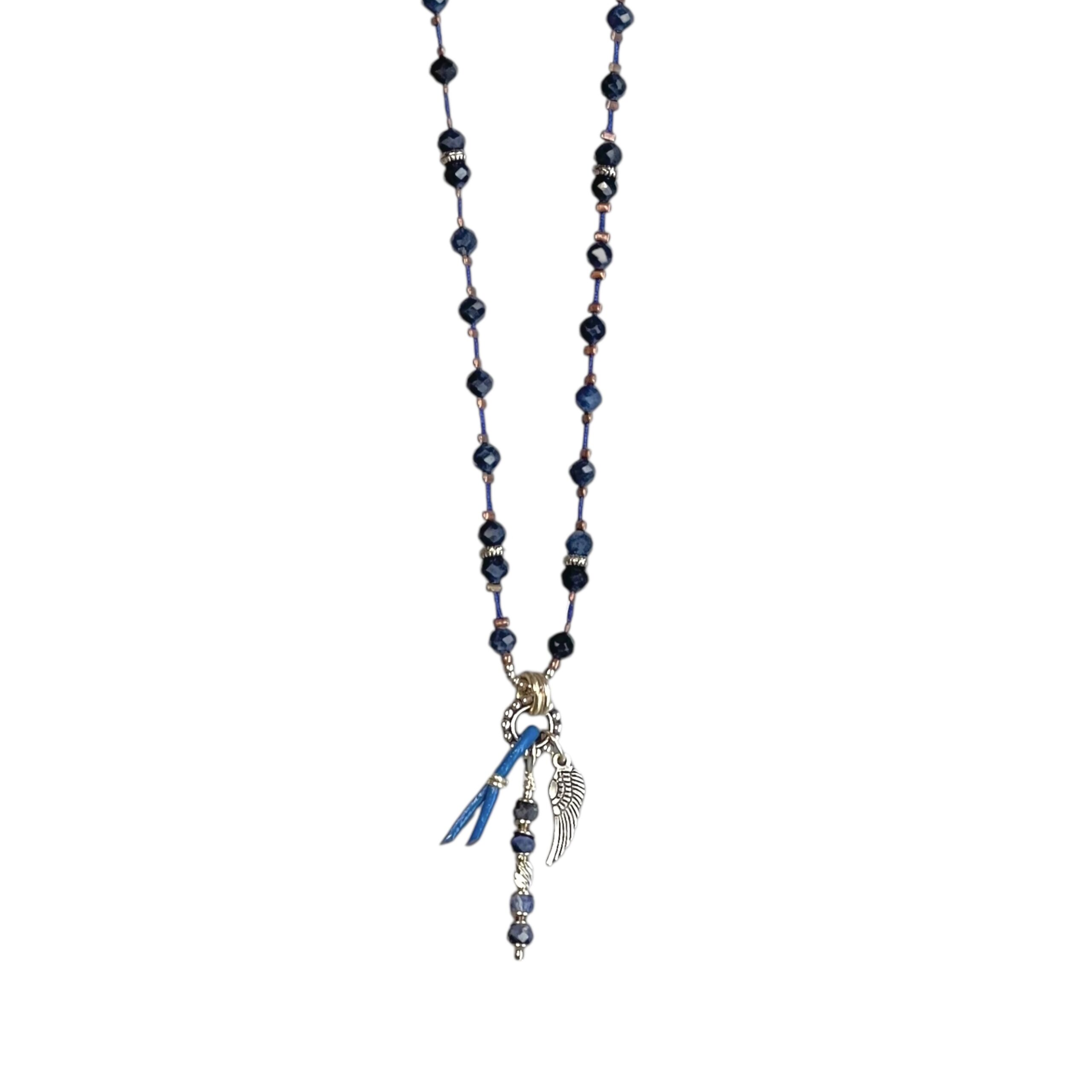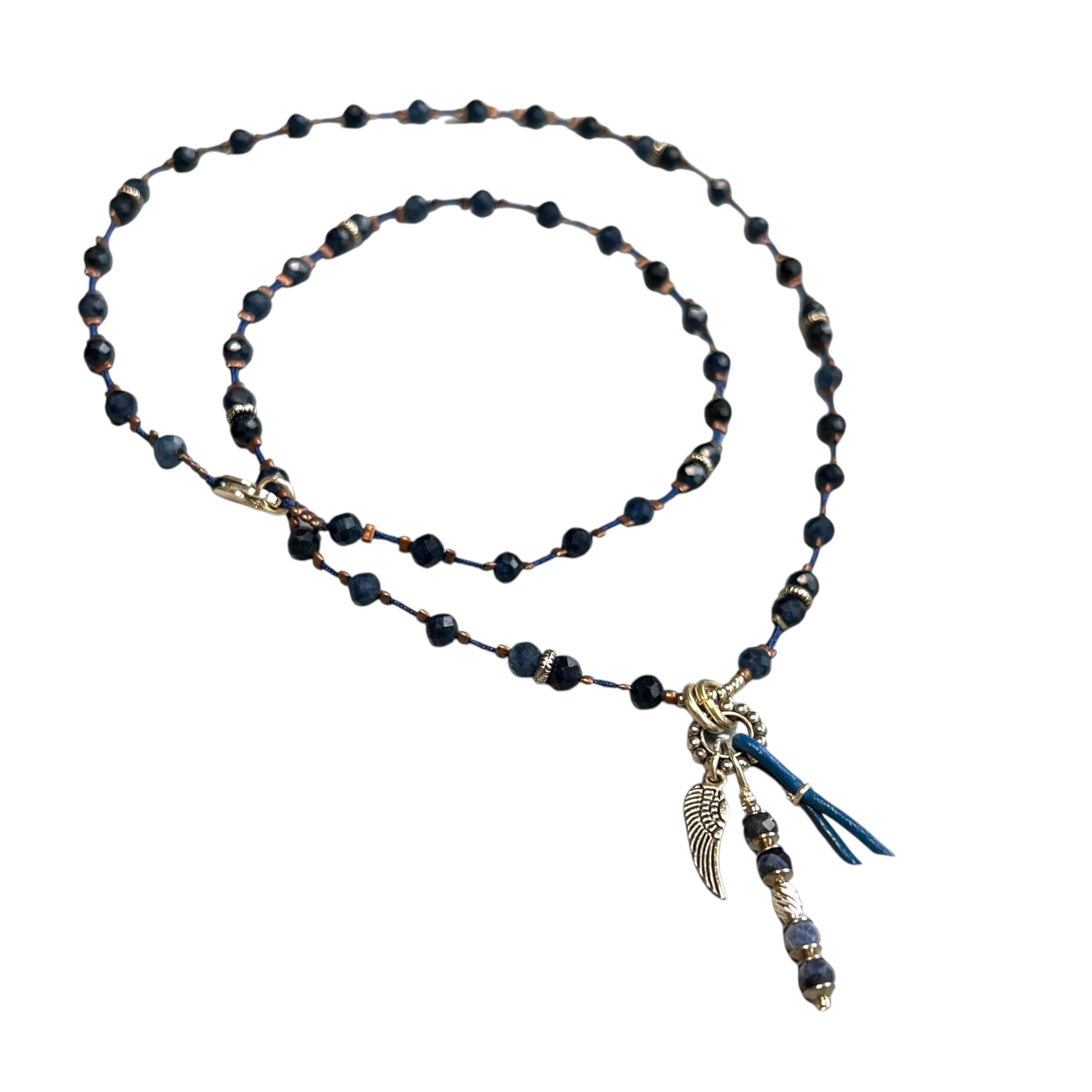 Aventurin, gümüş, deri ve bronz kullanılarak tasarlandı.
