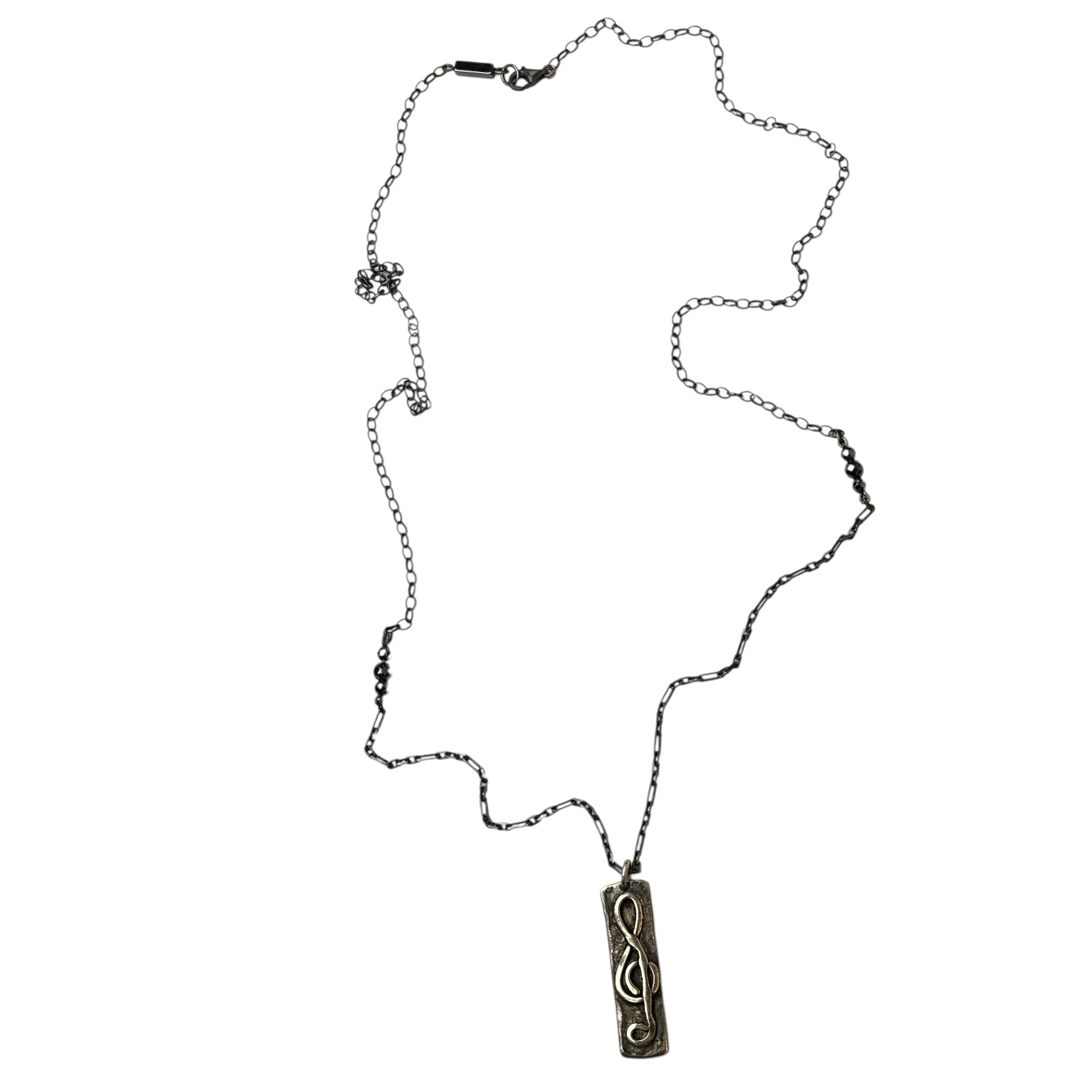 Uç; 3,5 x 1 cm Oxide Plaka Üzerine 3cm El Yapımı Parlak Gümüş Sol Anahtarı