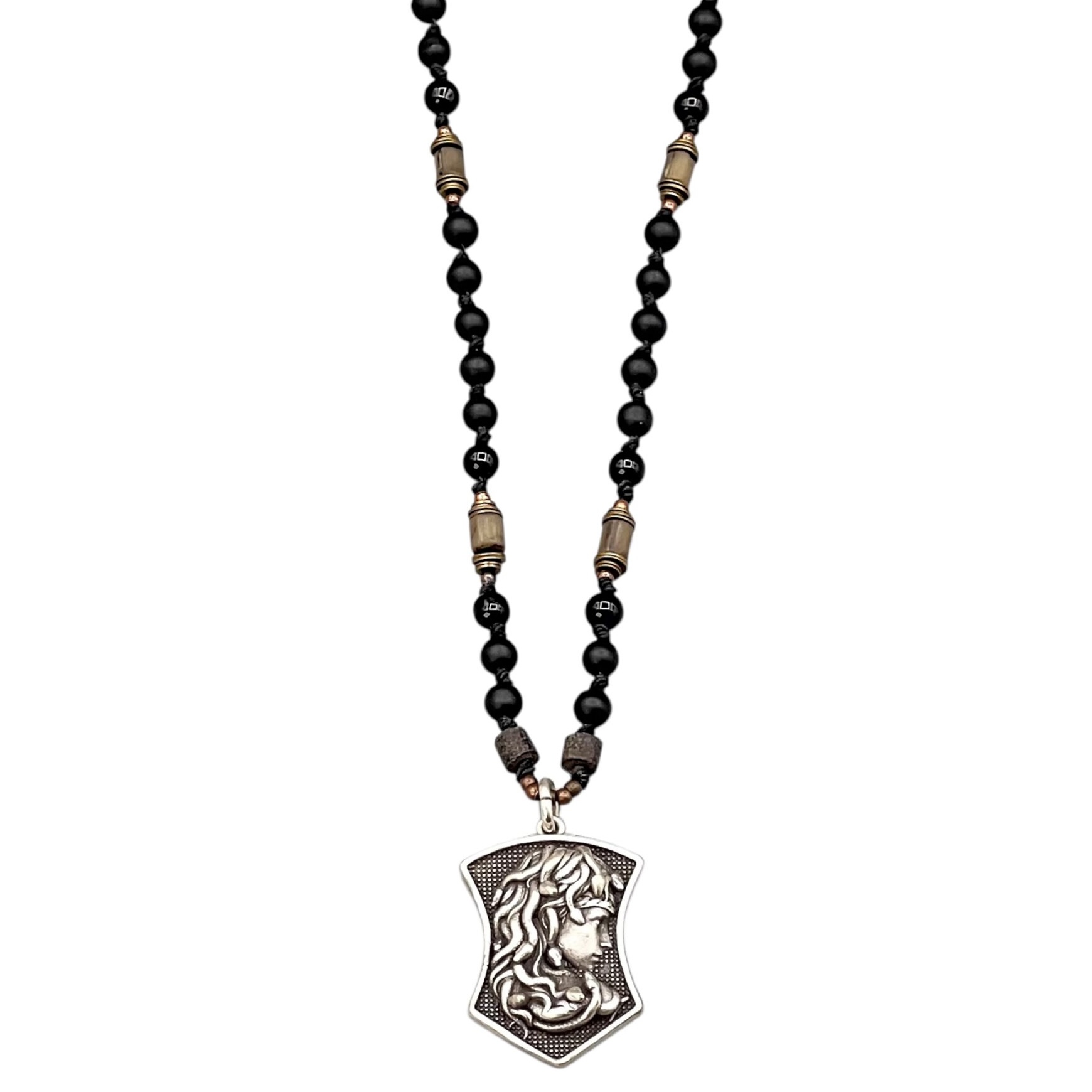 Green Nepal Stone, Onyx, pirinç, gümüş kullanılarak tasarlandı.