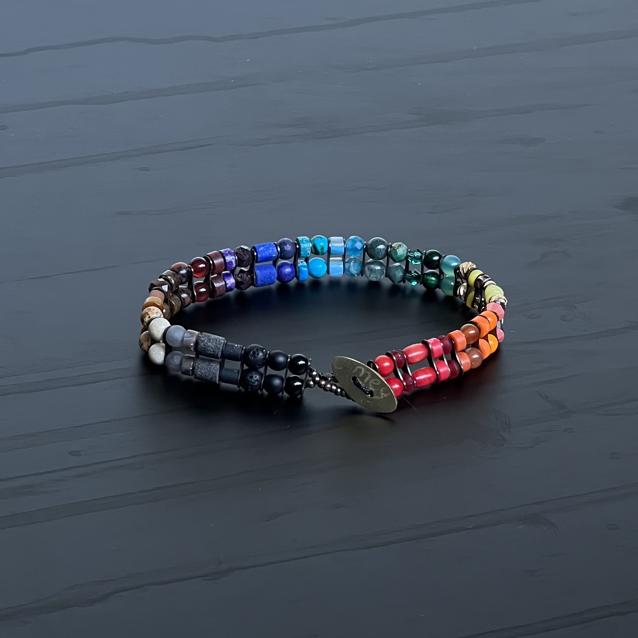 Onyx, Lava, Labradorit, Akik, Jasper, Tiger eye, Mercan, Lapis Lazuli, Jade (Yeşim taşı) ,Aquamarin, Firuze, bronz, pirinç, kullanılarak tasarlanmıştır.