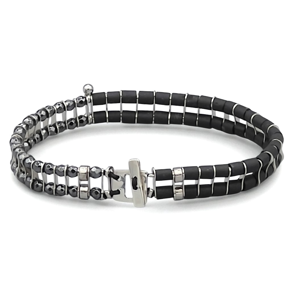 Hematit, Mat onyx, gümüş kullanılarak tasarlandı.