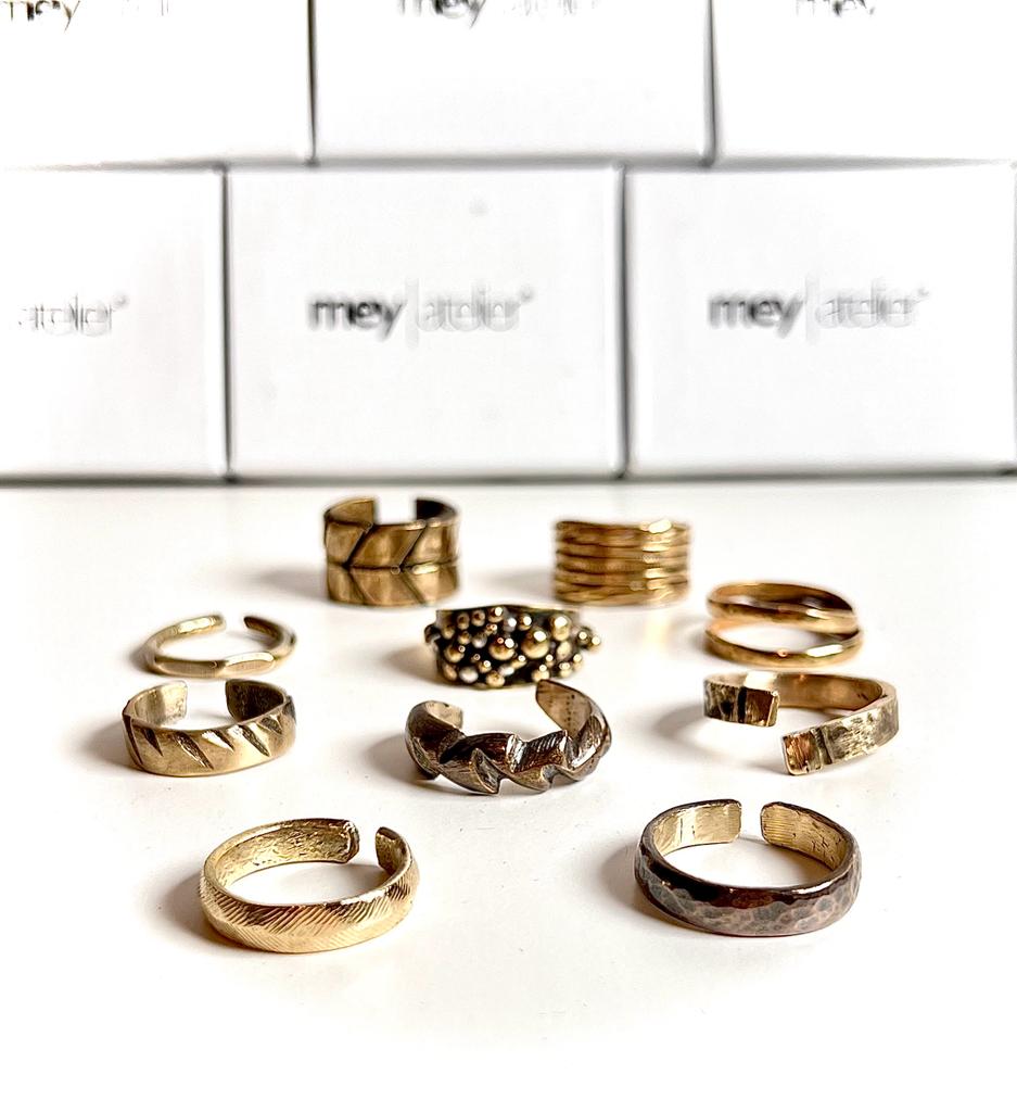 Ölçüsü ayarlanabilir işlenmiş pirinç yüzük.