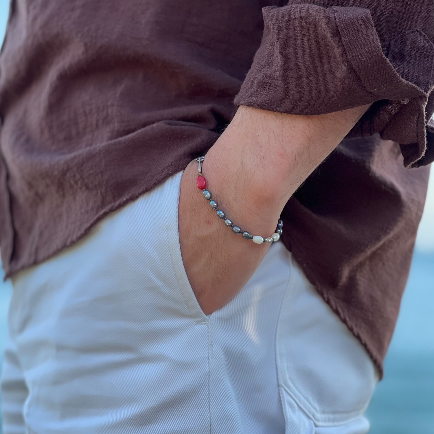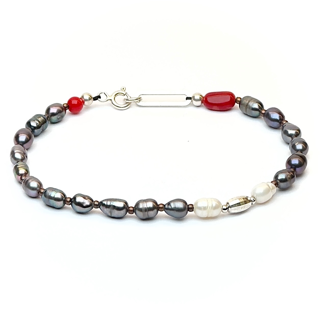 Siyah inci, Mercan , Beyaz inci ve 925K Gümüş ile tasarlanmıştır.