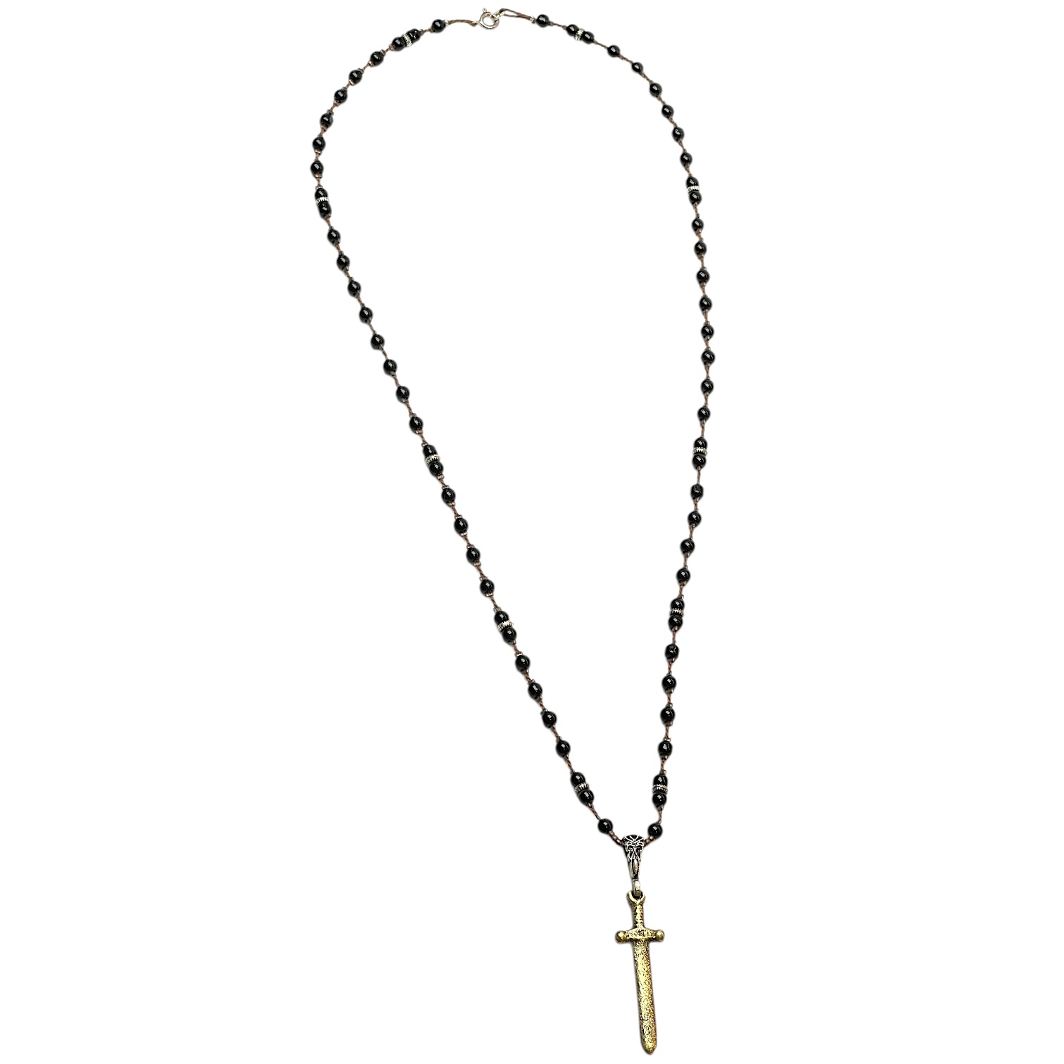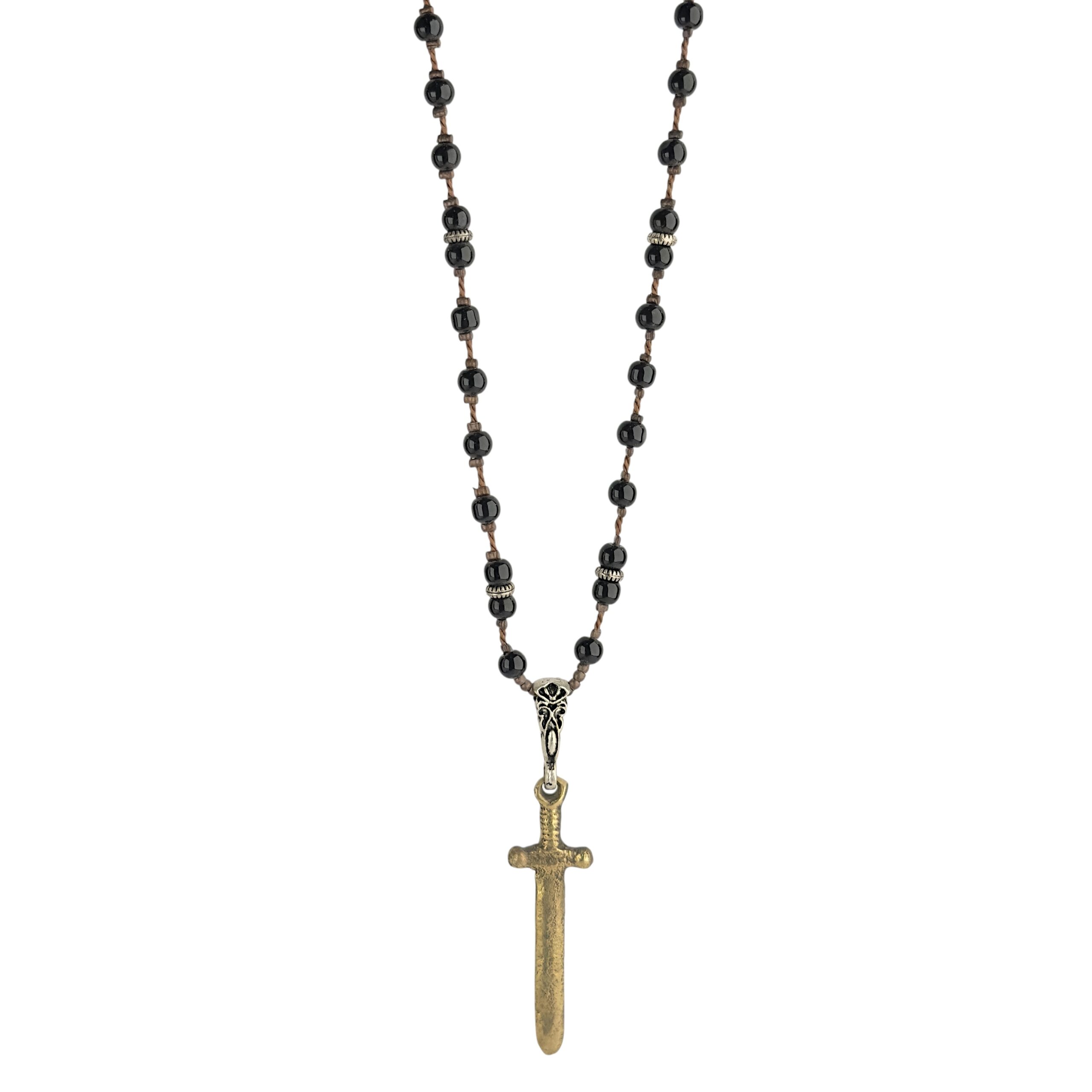 Malzeme & Ölçü Bilgisi; 5mm parlak Onyx, pirinç, 925K Gümüş Uç; 4,2 cm Pirinç döküm Kılıç